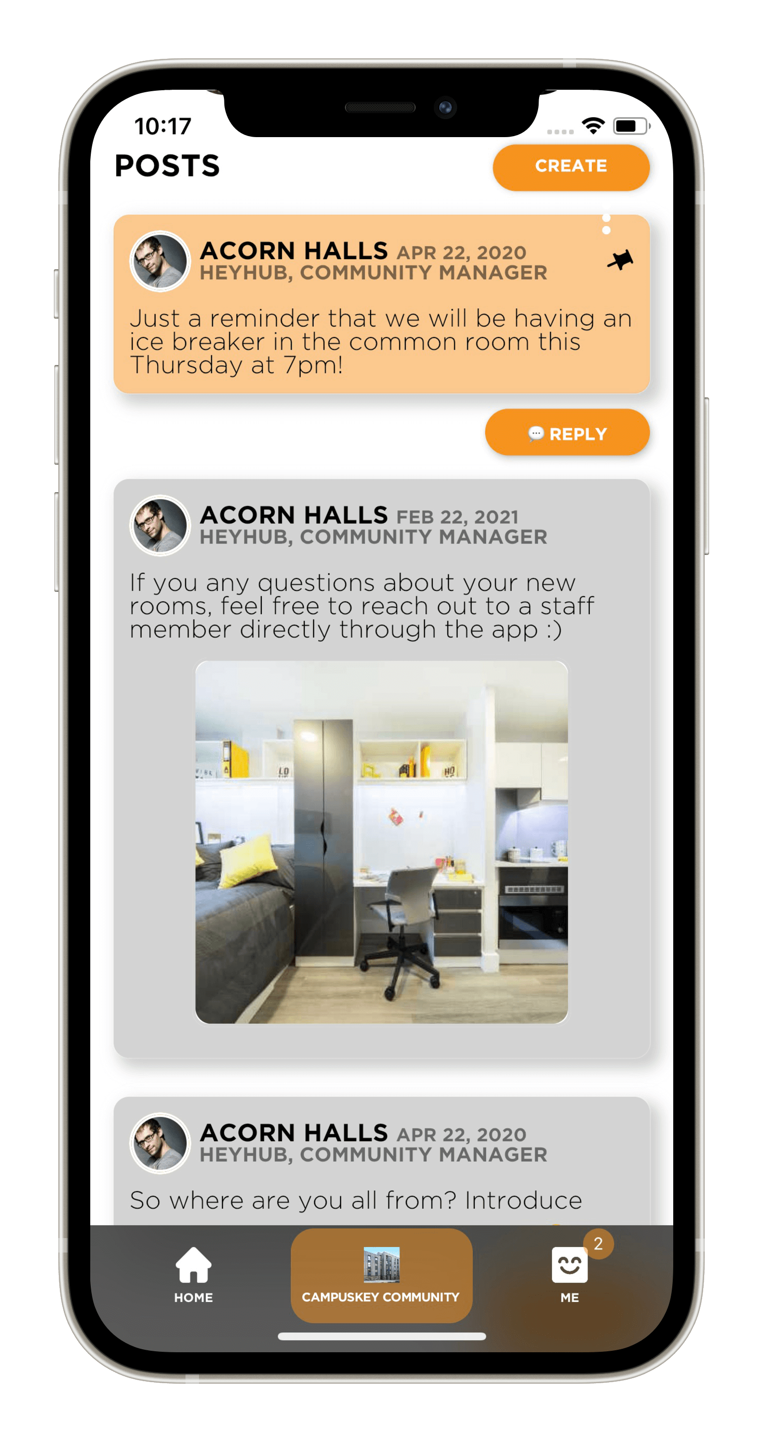 Not only was it essential that the platform delivered a unique community experience, but it was also a necessity that it encompassed the capabilities of a property management tool. HeyHub partnered with a PMS system to introduce HeyHub Property, offering CampusKey the ultimate 360 solution to manage its entire portfolio. Students experience HeyHub's sleek and easy-to-use interface for a consistent look and feel while staff benefit from the plethora of property management services offered by HeyHub's partner. The seamless integration between HeyHub and its partner ensured effective access to the following features: