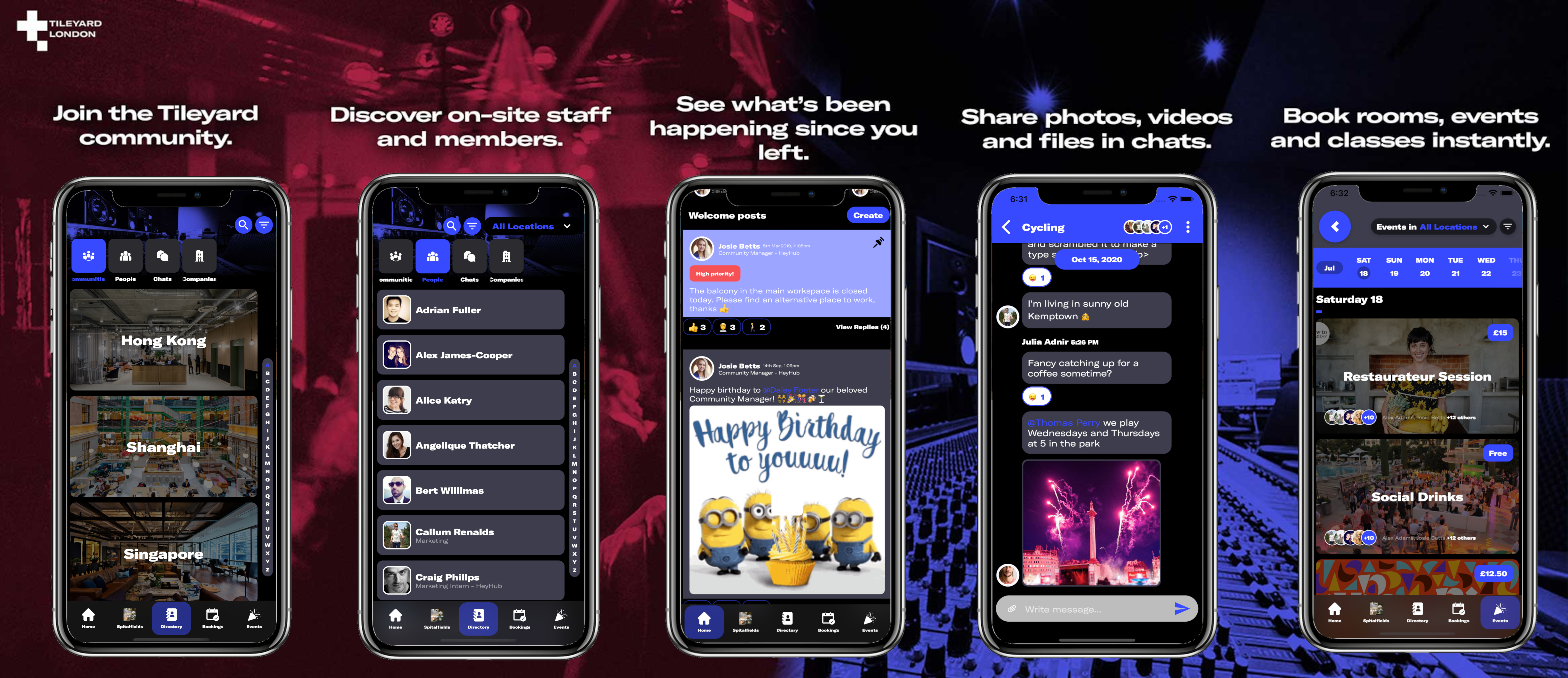 As with all the apps HeyHub is developing for co-working spaces, the Tileyard Studios app reflects and facilitates the productive, creative community it serves.