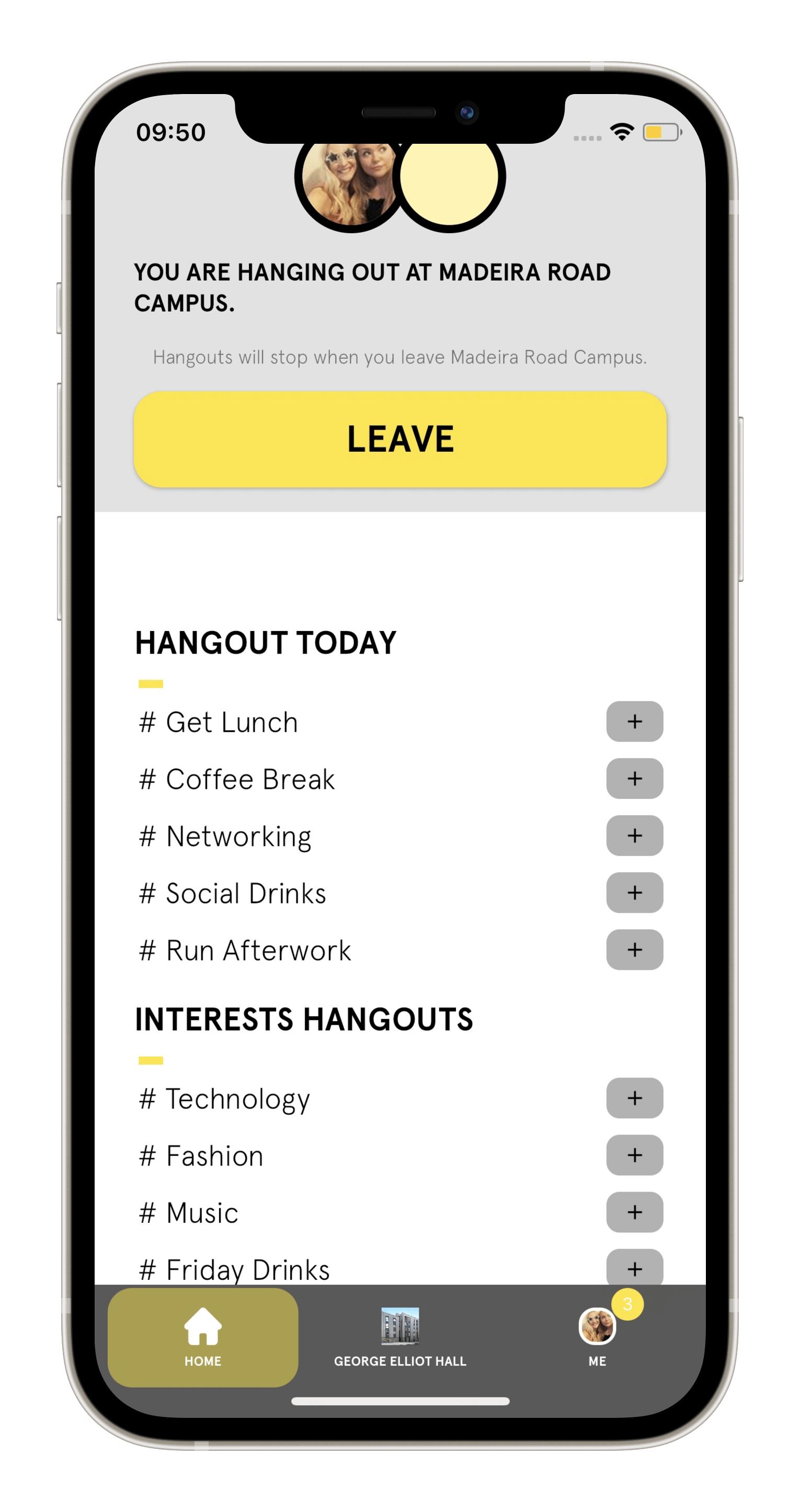 To help assimilate into the wider community, students also join daily hangouts by arranging meetups to discover new people by participating in the same activities. In addition, the student union have the ability to send out product deals and discounts while promoting exclusive events for students to get involved. All attendees are grouped into single micro-communities for each event, enabling students to connect and engage before attending.