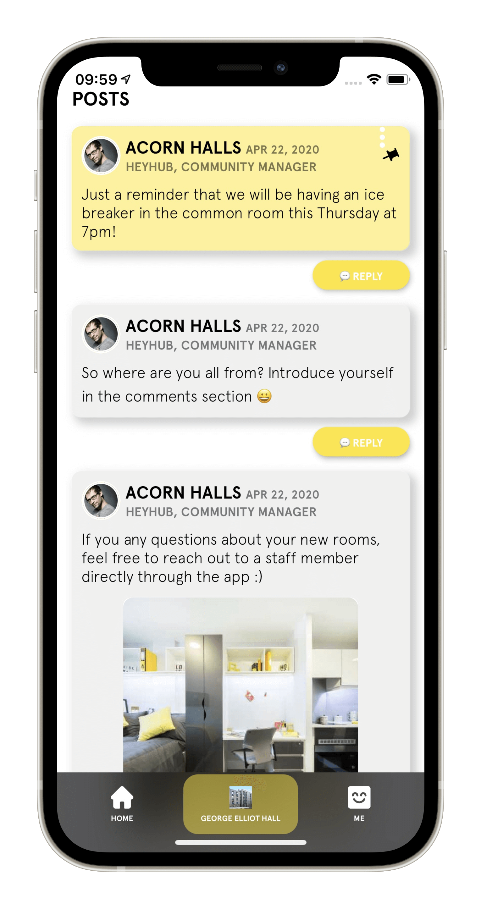 " We're utilising the HeyHub app at Mithras Halls of Residence at the University of Brighton to ensure smooth running of the site, so students stay connected with their flatmates, see campus events, and easily access to site services; from receiving package delivery notifications to contacting reception and Helpdesk team. "
